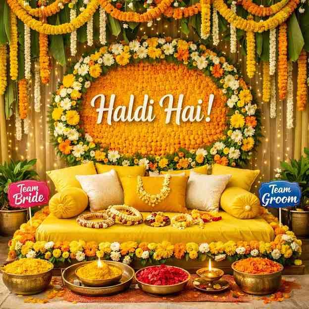 Hum complete event decoration services provide karte hain — stage decoration, gate & passage décor, balloon theme, varmala stage, Haldi/Mehndi setup aur photo booth. Saath hi special entry effects jaise cold pyro, dry ice, fog aur fireworks se aapke event ko memorable banate hain.